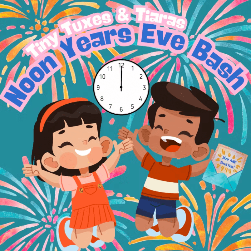 Little ones can dress to impress in their fanciest tuxes and tiaras while enjoying dancing, games, and festive activities. At 12:00 sharp, we’ll count down together and celebrate the “Noon Year” with plenty of cheer, music, and sparkling fun.